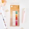 Sada samolepící štítků. Štítky jsou na plastovém archu, který se díky výsekům dá přichytit do šanonu. Zároveň má na sobě pravítko.
