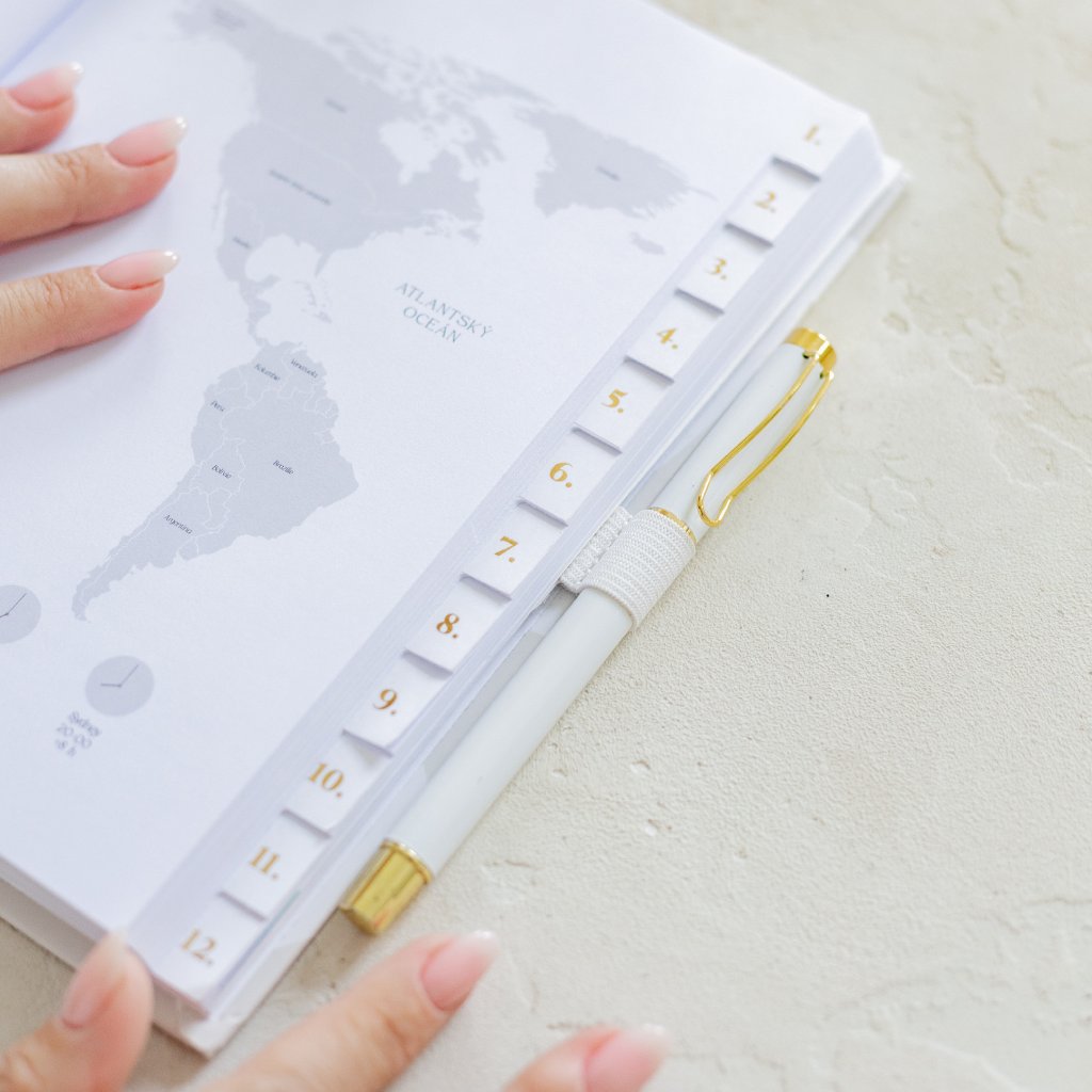 Na 12 měsíců vás provede promyšleně strukturovaným plánováním, doplněným o roční přehledy, inspirativní 100 day challenge, mapu světa a užitečné seznamy knih, filmů a dárků, které si chcete přečíst, zhlédnout nebo darovat.