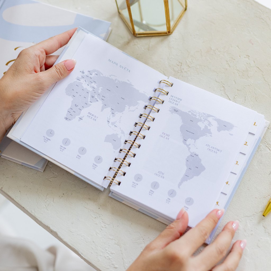 Na 12 měsíců vás provede promyšleně strukturovaným plánováním, doplněným o roční přehledy, inspirativní 100 day challenge, mapu světa a užitečné seznamy knih, filmů a dárků, které si chcete přečíst, zhlédnout nebo darovat.