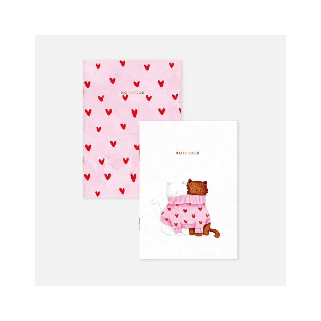 Sada dvou zápisníků velikosti A6 s prázdnými listy.