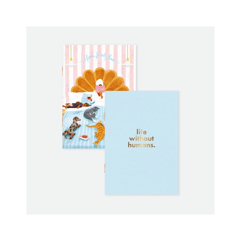 Sada dvou zápisníků velikosti A6 s prázdnými listy.