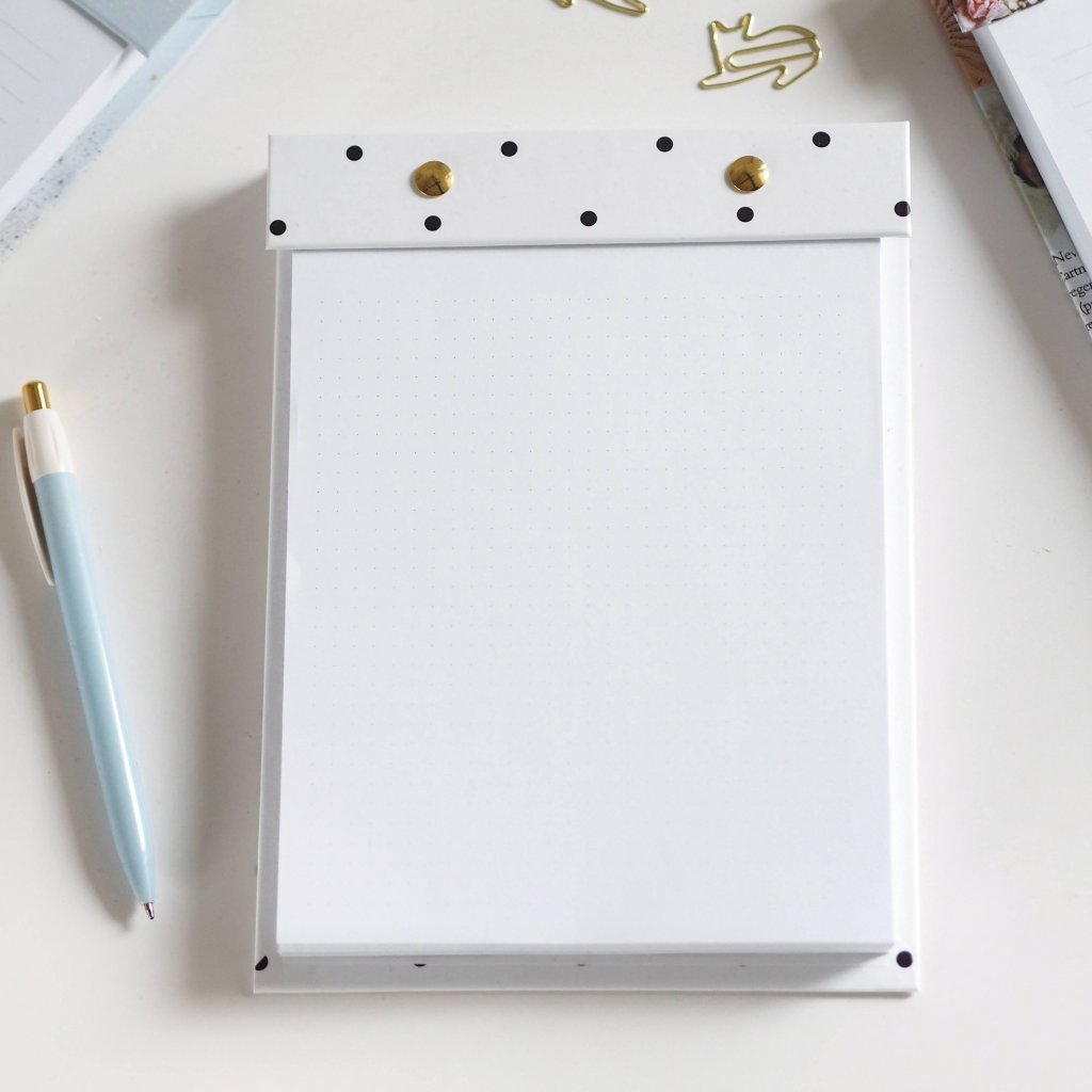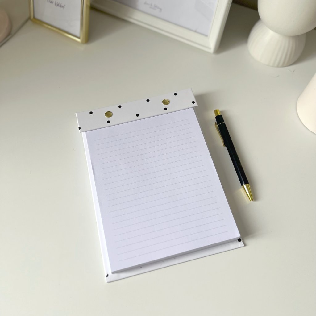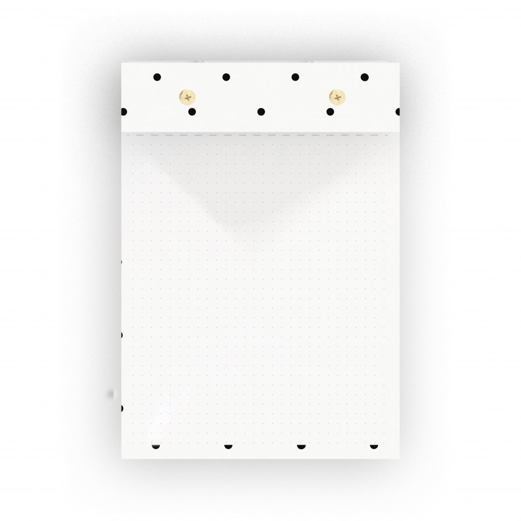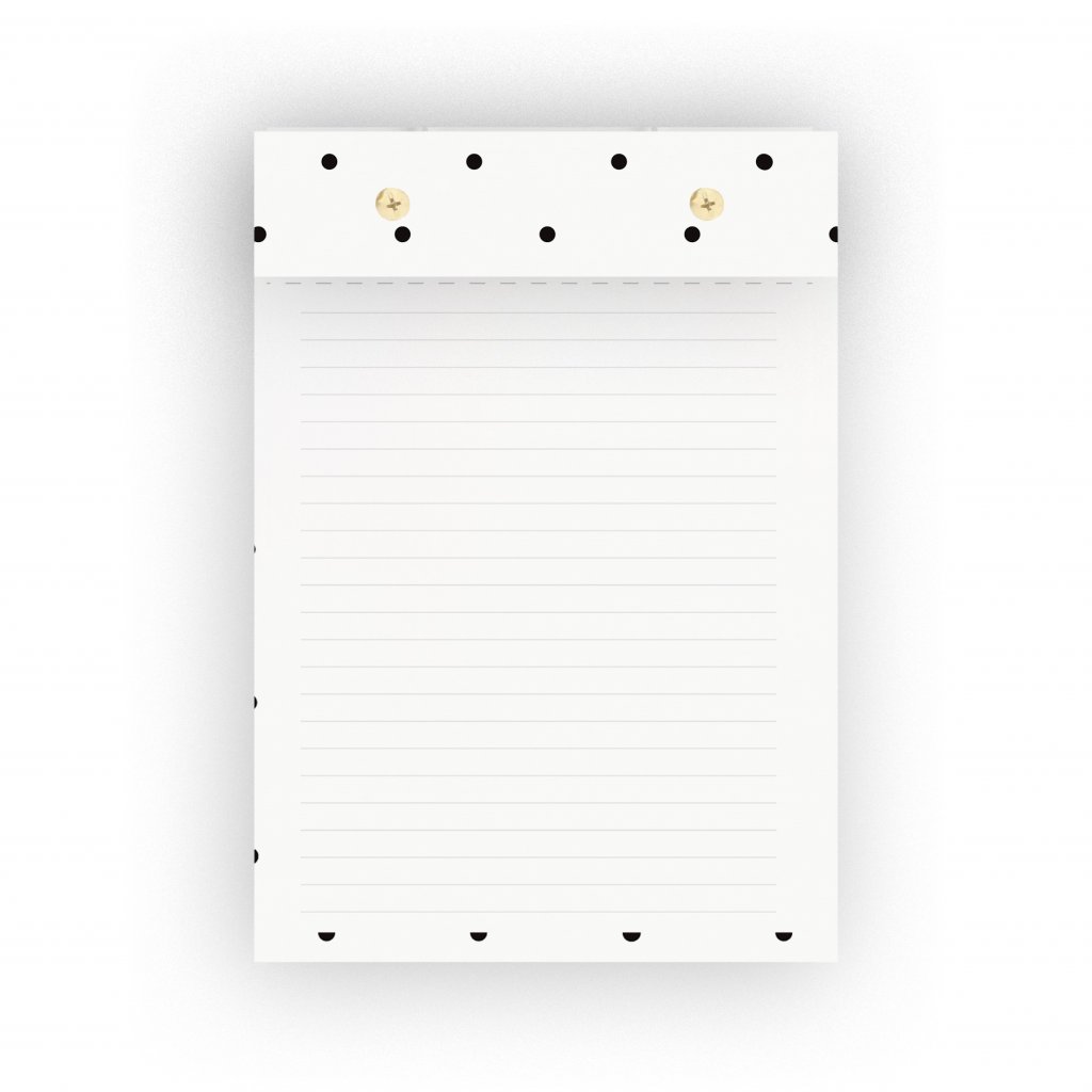 Designový blok na poznámky v linkovaném, tečkovaném provedení či jako to do list. Vnitřní strany jsou díky flexibilní šroubovací vazbě vyměnitelné. Blok obsahuje 300 listů.