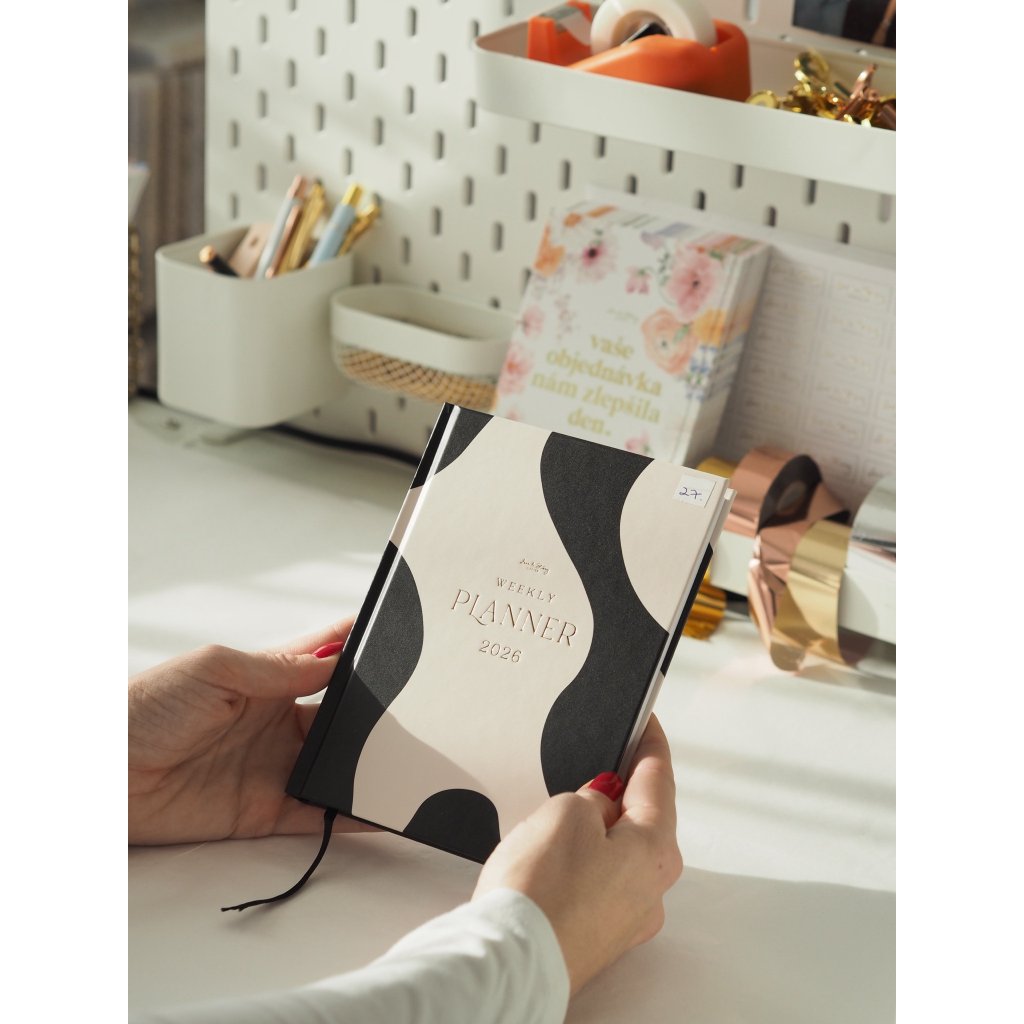 Knižní diář velikost A6. Diář je v angličtině. Diář nemá výseky na měsíce.